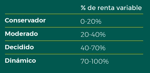 El perfil de inversión se define junto a tu gestor, teniendo en cuenta tus objetivos, tu horizonte temporal y tu tolerancia al
