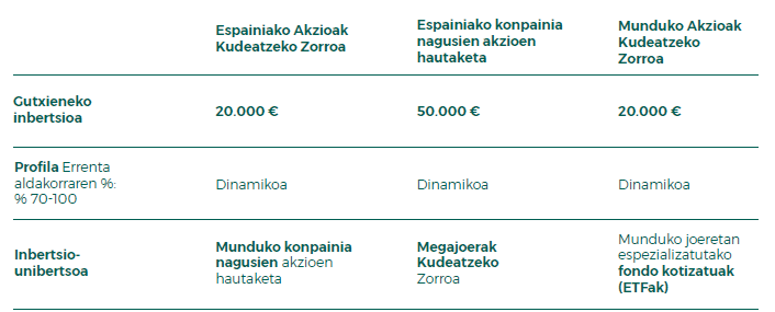 • Zure inbertsioei buruzko informazio zorrotza.